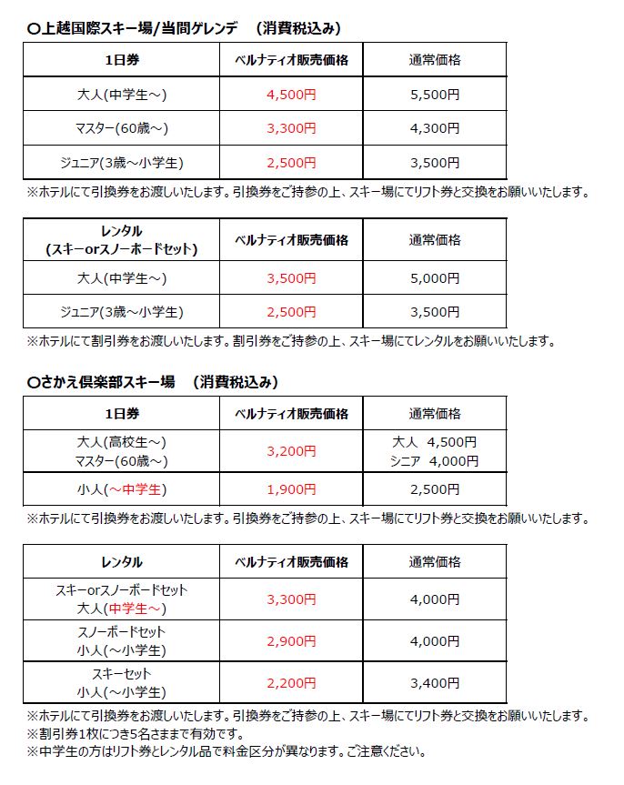 とってもお得なリフト券やレンタル割引券をご用意しております。ぜひお買い求めください。