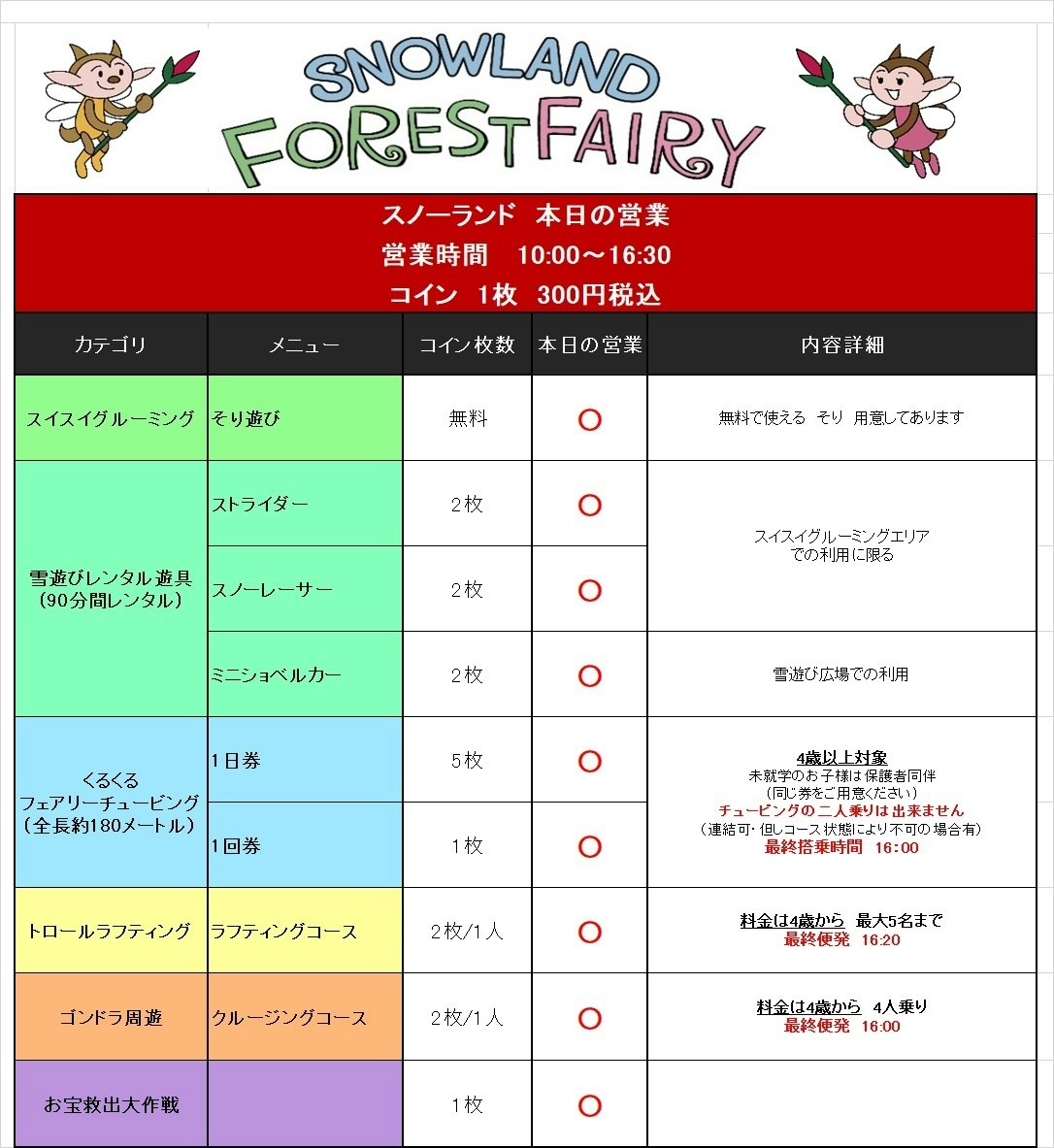 スノーランド営業情報「フォレストフェアリー」