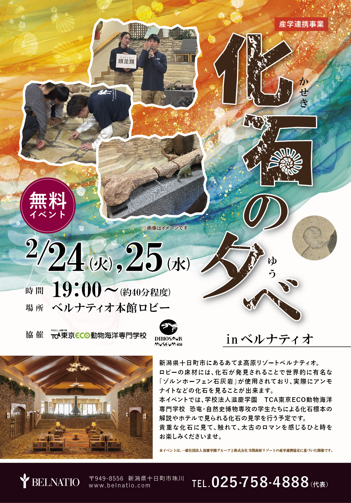 化石標本の解説やホテルで見られる化石の見学を行う予定です。