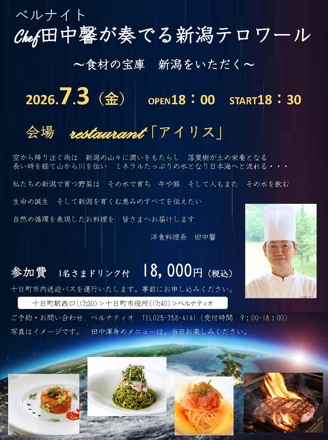【7/3】美食イベント『BEL NIGHT シェフ田中馨が奏でる新潟テロワール』